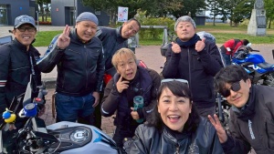 せいぜい10人位だろうと思ってたら、あれよあれよと言う間に最大規模の人数に膨れ上がりました。 今年はずっと暑くて、みんなバイク乗るの控えて鬱憤溜まってたのが、シーズンオフ間近と相まって今回に集約した感じでしょうか? ランチ処のカレー大将のキャパは最大でも20人程度… どうしたもんかと困っていたら、ざくさんが声を掛けてくれ、別店舗を手配しメンバーの半分を引っ張てくれました! ざくさん、いつもホントにありがとうございます✨ 当日集合、いつものローソン樺戸店にはお初のメンバーも合わせて30台程!! 圧巻です👍️ 今回の初参加はタイガーさんのお店のお客様、自分の年と同じ年式のSR500乗り期待の若手ピチピチ20代 のりおさんの友人ご夫婦 ご主人DS400C 奥様 レブル250 ご友人ZZR1400 の3名様 のりおチームは午後から用事が有るとの事で、途中離脱でした 来年はじゃんじゃん参加して下さいね! お待ちしてます😊 集合地点では久しぶりの自己紹介タイムやkooさんとがしおさんの新車お披露目等盛りだくさん ランチの二店舗とも参加メンバーから好評で一安心 デザートのふるふるトマトは今年で閉店!! ラストのさくらんぼソフト食べれて良かった良かった 最終解散は厚田道の駅 全員無事に帰宅しました。 みんなのツーレポも届いてますので以下に紹介します ゼブラさん 朝は寒かったけれど日中は快晴で暖かく、フーディーで十分でした。留萌から厚田まで、Bで久しぶりに走って、とても懐かしい想いが蘇りました。景色も最高ー! マンゴーお気に入りの厚田の巨乳も良かったです! マンゴーさん ヨッシーさん、参加の皆さんありがとうございました。 久々にお会いできた方が多く楽しかったです。 ガシオのセクシーねーちゃんを素早く発見する嗅覚は流石でした! ざくさん 企画のよっしーありがとうございます!ピーカン激晴れで今日も楽しかったぁ!休憩が終わってスタートするとしぶろくが信号の所に待っててくれてまた。 バトンリレー‼️ホッコリ😊些細な事じゃなくしっかり根付いてるんだね👍 ありがたやー(ありがとう) シーズン残り少ないですがまだみんなで走りたいよ~😄 kooさん 今回変な色のNEWバイクをお披露目出来た金髪の、kooですが、髪の毛が緑でない緑川さんにイイ色だと言われて嬉しかったです、他の人も褒めてくれて、社交辞令だどしても真に受ける私はテンションが上がってしまい、知らない2人組のライダーに付いて行ってしまいました、今後気を付けますw 後、無料高速入口で待っててくれた46を追い抜かしてしまい、カレー屋に向かう先導と分離させてごめんなさい、でもね、カレー屋の場所知らないってw 行き先は把握しとこうね^_^ タイガーさん 本日はありがとうございました。よっしーさん乙です(おつかれさま) 激若で高身長の阪部くんを快くお迎え頂きましてありがとうございました(ありがとう)また遊んで下さい。 そしてお久しぶりの方もいらっしゃって、楽しかった(楽しい)また来てね! ゲロさん カラッと晴天で気持ち良いツーリング日和、結局集合場所に何人集まったか私は分かりませんでしたw 超久しぶりの若者で、マンゴーさん曰く、たいがーさんが同級生らしいサカベ君!ん~~若いっ! 身体に悪い所なんて無いんだろーなー、羨ましーなーw あっと言う間に留萌に着いて、カレー組と波乃屋 組に別れてお昼ご飯、波乃屋組はザクさんのお陰で入店と同時にほぼ料理が出されているという神業で、一括支払いもピシャっと決まって、ザクさん本人気付いて無いと思いますが満足されたお顔されてましたw その後、留萌の道の駅で休憩を兼ねて集合、増毛でアイスからの厚田で解散、この人数でもっとワチャワチャするかと思いましたが、そこは皆さんの大人の対応で、トラブルも無く無事に終わる事が出来ました。 最後に、AI作成の合成レポ、楽しみにしてます。 緑川さん 皆様お疲れ様でした❗マスツーになりましたねー。30台位だっけ(?)でツーリングなんて俺は超久々❗タイヤの慣らしにはちょうど良く、道民の森からのワインディングは楽しかったな~‼️(Fun) よっし~、今回の企画(あと最後まで付き添い(笑))ありがとう😆💕✨、ザク、お昼ご飯はスムーズにみんなが食べられるよう配慮して頂き感謝です(感謝) マーシーさん ツーレポ(反省文) お疲れ様です 昨晩急遽参加表明し、集合時間と出発時間を勘違い 出発時間の 1分前に到着 皆さん出発したので金魚の糞みたいなに付いて行きました・・・が、前のバイク見失い一時ソロツー その後もりぞーさんに助けられ休憩場所到着 昼食場所も住所も何も頭に入っていませんでした すいませんでした 次回からちゃんと予習やりますので(ホントか⁉️) 次もろよしくおねがいします カツカレー美味かった 次は特大いけそうな気がする。 湯浅さん 雨でしばらく乗れず、今回秋晴れっぽい良い天気の中、こんなに大勢で走れうっぷんちょっと晴れました。海綺麗だった〜。よっしーさん、ザクさん、ありがとうござい