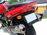 これが Before~After。 下の写真の中央上に銀色のバーのようなものが見えますが、その上にバッテリーが載っています。 エアクリーナーボックスがサイドカバーのような役割をしていたから、 それが無くなった事で、スカスカになり、サスペンションが丸見えになった。 キャブレターと違ってインジェクションは個人でセッティングが出来ない。 吸気が変わることで扱いづらくなる事を覚悟してたんだけど、全く問題なかった。 むしろ走りは滑らかになった気がする。 バッテリーっていう重量物が車体の中央に近づいた事でほんの僅か軽快になった気もする。 |