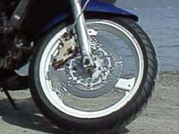 キャリパーはバラしたまま組む事すらせず、 過去にトライアンフで使っていて、余っていた6potキャリパーを使用。 いわゆるシングルシックスってヤツです。 かっこいいでしょ。 シングル化に伴ってマスターシリンダーも小径のモノに変更。 でもマスターとキャリパーのピストン比が合ってないみたいで、効きが甘くてタッチもよろしくない。 慣れちゃったからそのままだけど、他の人に乗せたらみんなブレーキ効かないって言う。 ブレーキホースはフロントフォークの外側を通す、昔のレーサー風の取り回し。 フォークが沈んだときにホースが突っ張らず、たわんでくれるという理論です。 |
