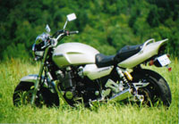 この角度がかっこいい。 ヤマハのいいところは一つ一つのパーツが美しく、 それがまとまった全体のフォルムも完成されている事。 タンクは絶品。傑作。 引き締まった筋肉のよう。 ヤマハは他社には真似できない微妙なラインの使い方をする。 1300になってもタンクだけは変わらなかったことからも、 このタンクの完成度の高さが分かる。 |