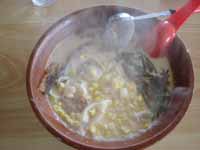 裏摩周にも表摩周にも裏切られた腹いせに、ミルクラーメンを食べる事にした。 1500円!やたら高い。 ここのおねぇちゃんがよくしゃべる人で面白かった。 摩周湖見ずに帰れるかよ! って事で 今日は摩周に泊まることにした。 時間ができたから温泉にでも入ろう。 この辺にいくつかある無料温泉の中で おねぇちゃんがイチオシするコタンの湯に行く事にした。 |