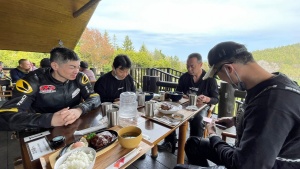 | 久々のツー企画者、早目に30分前に集合場所へ 一番乗りの予定が既にゲロさんとスナイパーさんが! その後、続々と途中合流のとくダネさんを除く全員が、集合時間前に全員揃いました! さすが、ほぼ全員がbのベテランさん、優秀です! 本日の初参加はゼブラさんとこの従業員のお母さん、湯浅さん! 本日唯一の女性です。 今日は温度も暑く無く、湿度も低い北海道らしいツーリング日和!! 久々の先導に緊張しながらも最初の休憩場所のきのこ王国 仁木店へ b高齢化問題に熱い議論(!?)を交わし、とくダネさんと合流場所、昼食場所の寿都湾 元祖 かき小屋へ しらす丼を食す予定で入店すると「数量限定 特別価格\4,000ウニ丼」の文字が! 積丹では平気で\7,000はくだらないウニ丼(実際、この後の神威岬では\7,380でした・・・)が!! これは頼まない手は無い! と、いう事で半数以上がウニ丼オーダー!! しかし、大食漢の自分はウニ丼だけでは腹は満たされず、同時に岩のり弁当オーダー(笑) 腹も満たされ、次の休憩地点は鰊御殿とまり ココはかき小屋と神威岬の中間に、いい休憩地点が無かった事からグーグルマップ上でチョイスした地点 せっかく来たので鰊御殿とまりを見に行くと入館料\300・・・ 騙されたと(誰に!?)思いつつ中に入ってみると意外と見応えがあって、大満足! ゴールデンカムイ好きな人は是非、行ってみてください 入館料以上の満足感あります さて次は夏にいくのは10年振り!?の神威岬へ 到着すると激混みの上、露出の多い外人女性だらけで目のやり場に困る・・・ 当然自分は喜んでおりましたが(笑) しゃこたんブルーソフトも大行列で、一度は断念しましたが、写真撮る為にどうしても買いたい! というけで\500の高いソフト、30分並んで買ったけど味は・・・ 神威岬の先で集合写真撮りたかったが、本日参加者全員ほぼアラカン! 海の見える場所で通りがかりの人に集合写真撮ってもらって満足したとさ(笑) 最後は今年オープンの道の駅ふるびら たらこミュージアムへ 神威岬と同様、激混みを覚悟したがココは意外に空いておりました 皆、思い思いに買い物をし、ここで解散! 久々のツー企画、なんとか重責を果たし、満足感と本日の楽しい思い出に浸りながら、事務所直行で21時まで仕事でした(笑) (Report:ガシオ) | ||